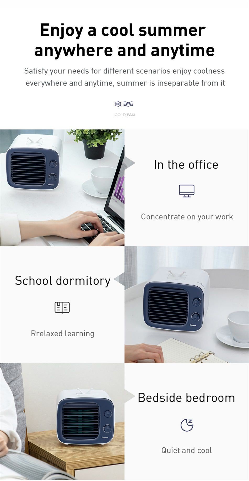 Một số vấn đề khác cũng phát sinh như tiếng ồn từ mức quạt to, làm khô da mặt bạn và dễ xảy ra cháy nổ do hoạt động quá tải. Giải pháp mới cho bạn là sử dụng chiếc quạt Baseus Destop Cooler của chúng tôi.