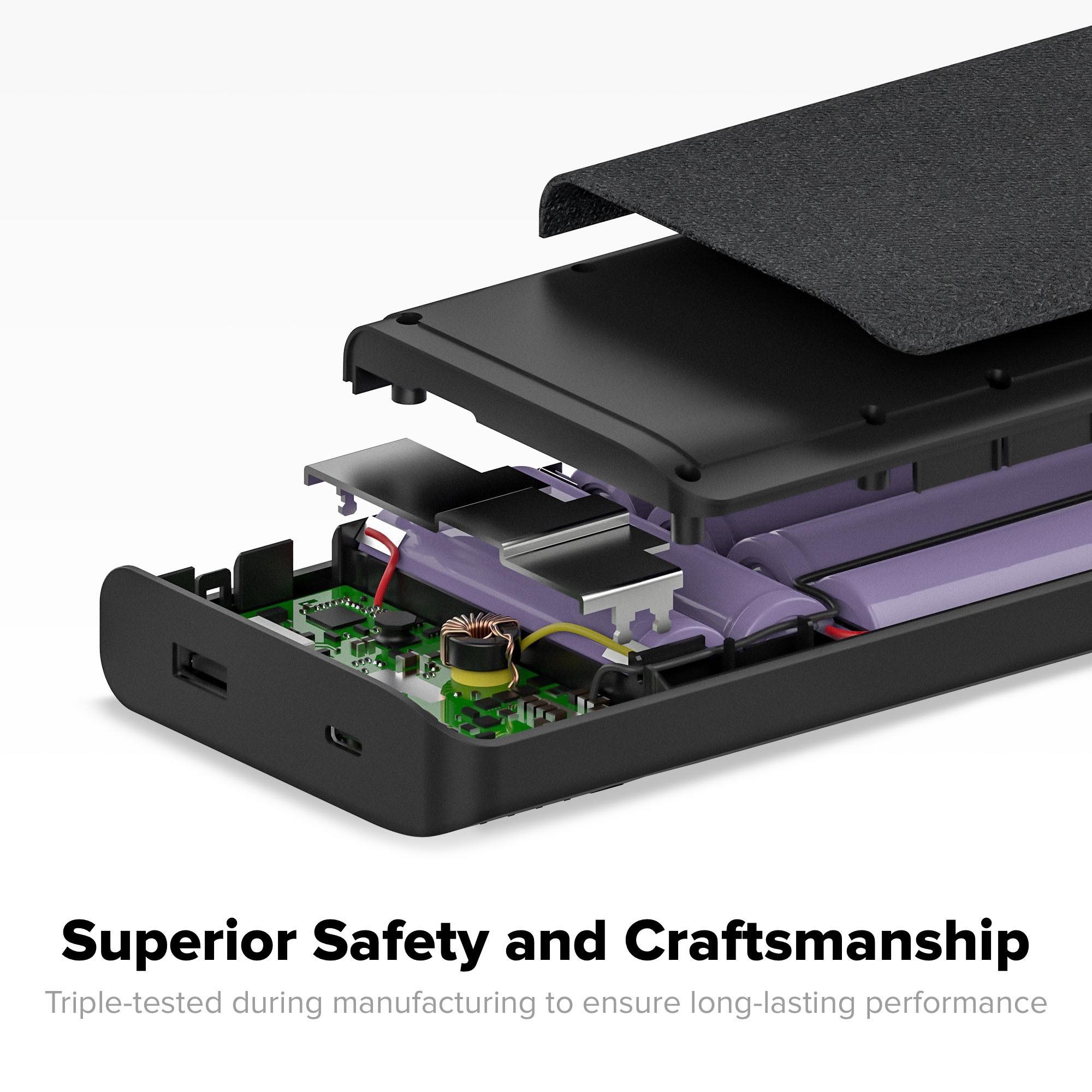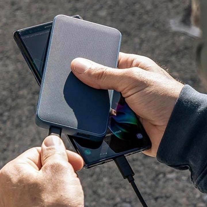 ✓ Thiết kế nhỏ gọn , mỏng , nhẹ (chỉ 𝟸𝟹𝟻𝚐) . 2 bên sạc dự phòng được bọc lớp vải bện đặc biệt chống trầy xước , độ bám chắc chắn , cầm chắc tay