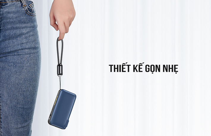 Remax RPP-278 sở hữu kích thước nhỏ gọn 112.5x56.2x30mm với trọng lượng nhẹ nhàng là 207 gram là một thiết kế lý tưởng phục vụ nhu cầu sử dụng có tính cơ động cao. Pin sạc dự phòng có đi kèm một dây buộc giúp người dùng dễ dàng xách tay hoặc treo xe vô cùng tiện lợi. Điểm đặc biệt nhất ở chỗ dây buộc ấy chính là một chiếc cáp sạc nhanh mini Type C to Lightning đi kèm. Chiếc cáp độ dài 12cm vừa vặn để kết nối sạc pin giữa điện thoại và pin dự phòng.