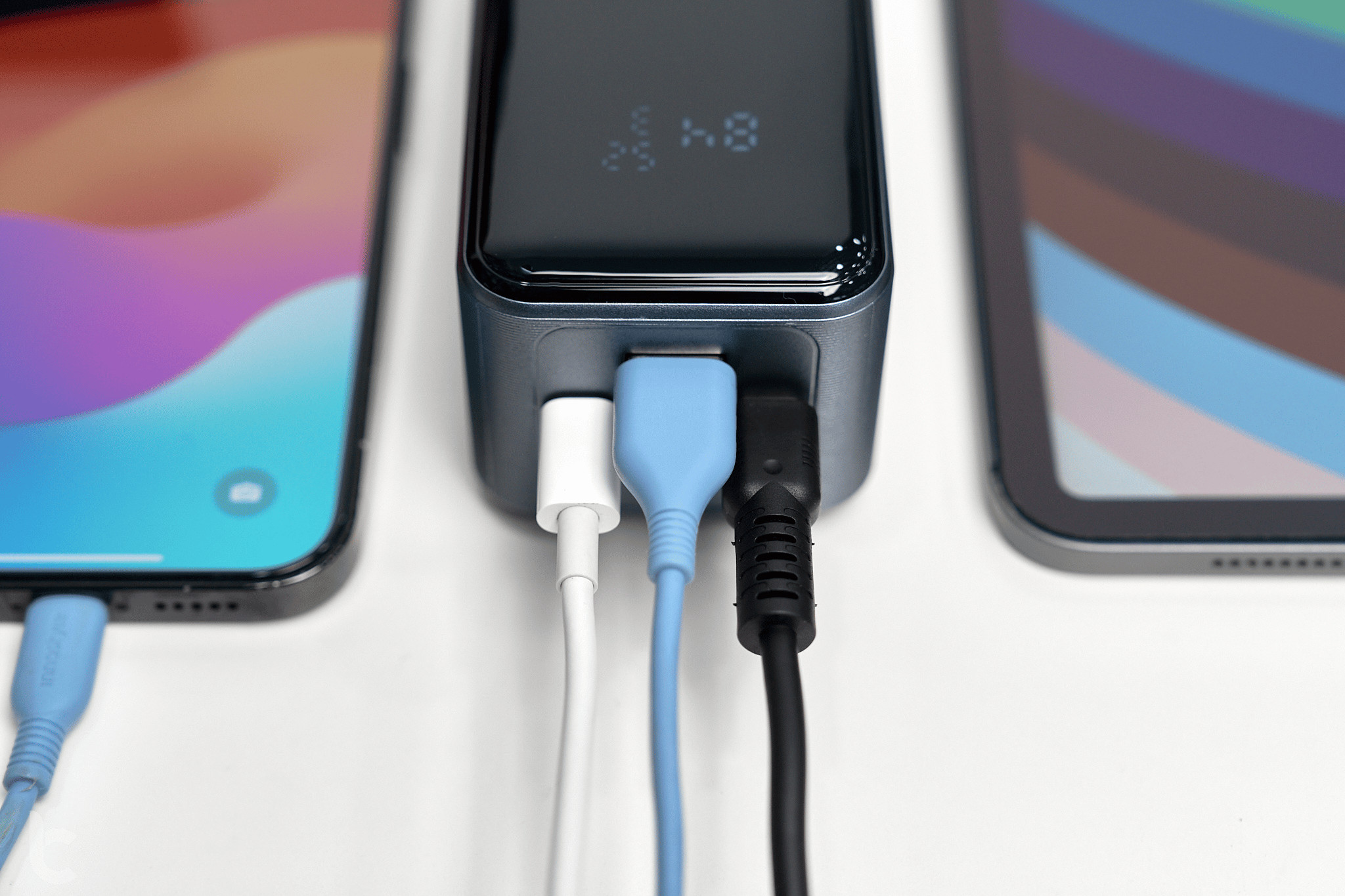 Màn hình LCD chỉ báo phần trăm pin sắc nét. Sạc nhanh 3 thiết bị cùng lúc có thể sạc nhanh cho MB/ Laptop/ Máy tính bảng và điện thoại hiệu quả và tiết kiệm thời gian.