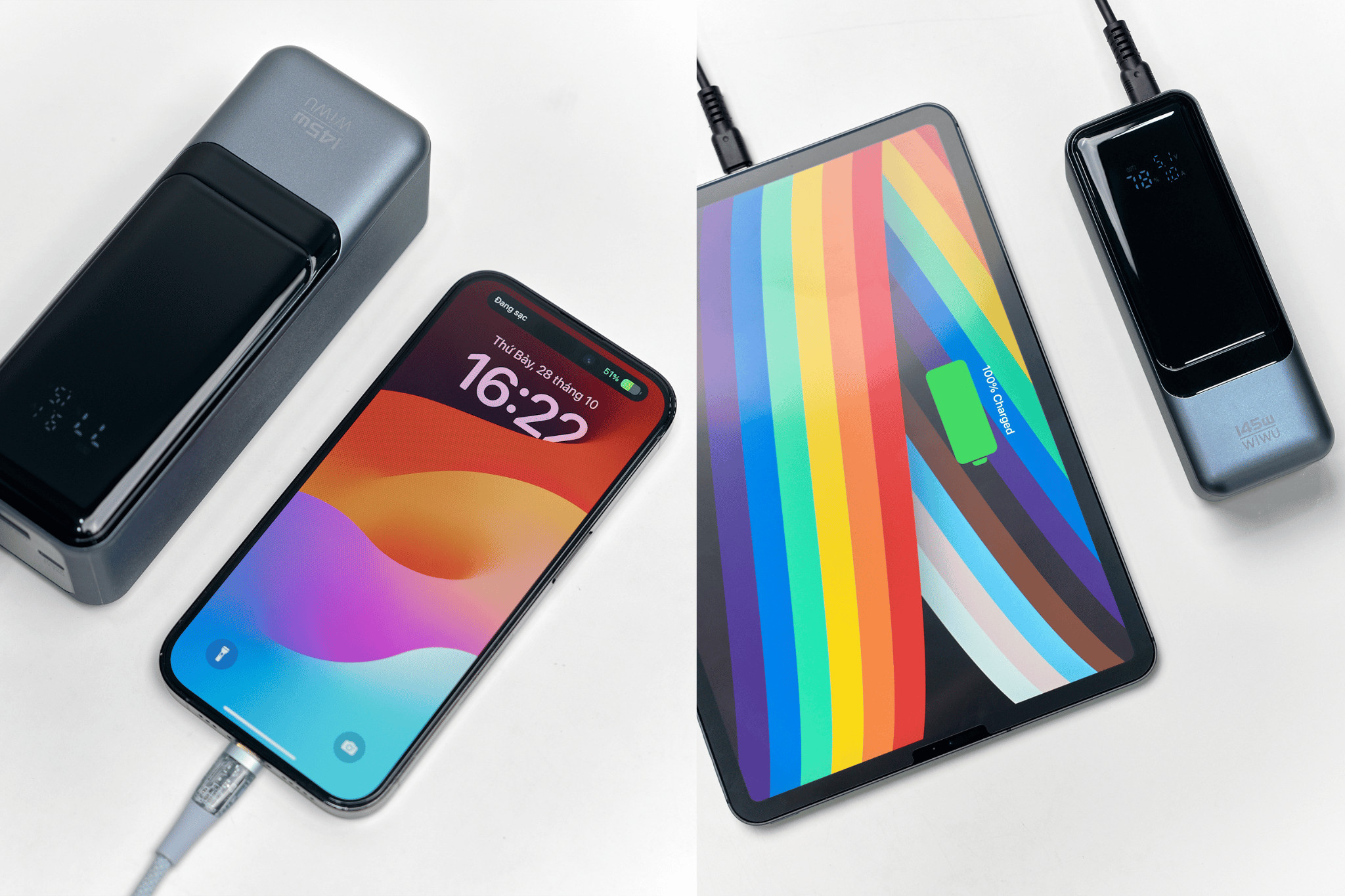 Sạc Dự Phòng WIWU Tank Cho ra công suất đầu ra của một cổng được tăng lên từ 100W đến 145W cho phạm vi sử dụng rộng hơn và sạc nhanh hơn cho thiết bị.