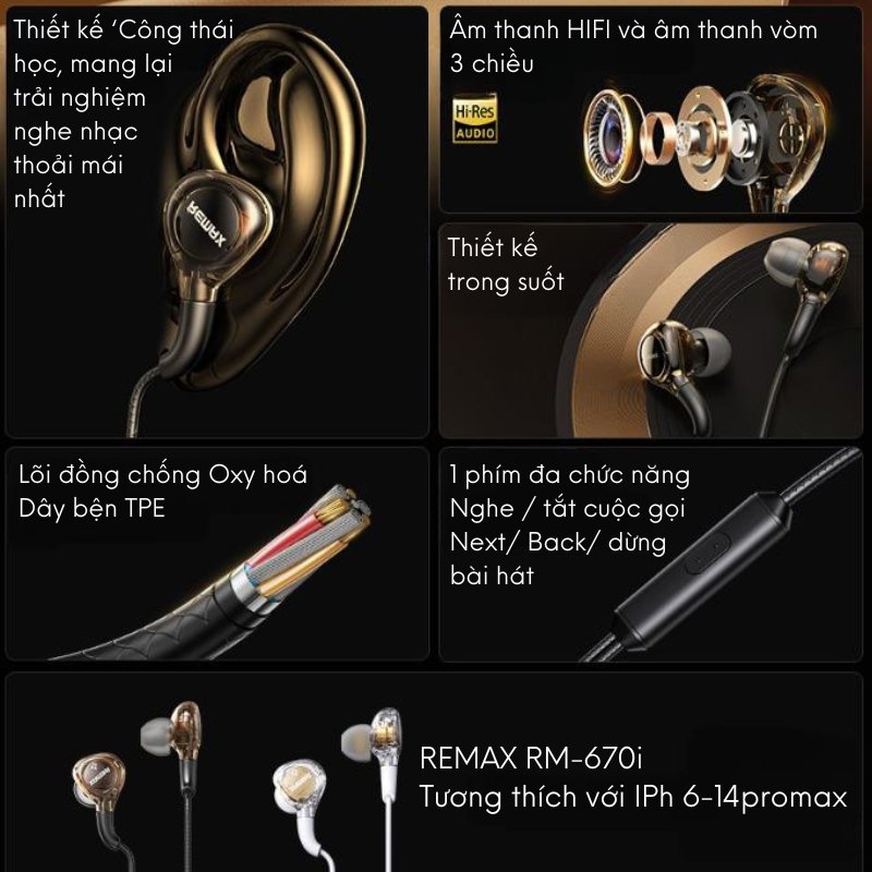 ✔ Tên sản phẩm: Tai nghe có dây Remax RM-670
