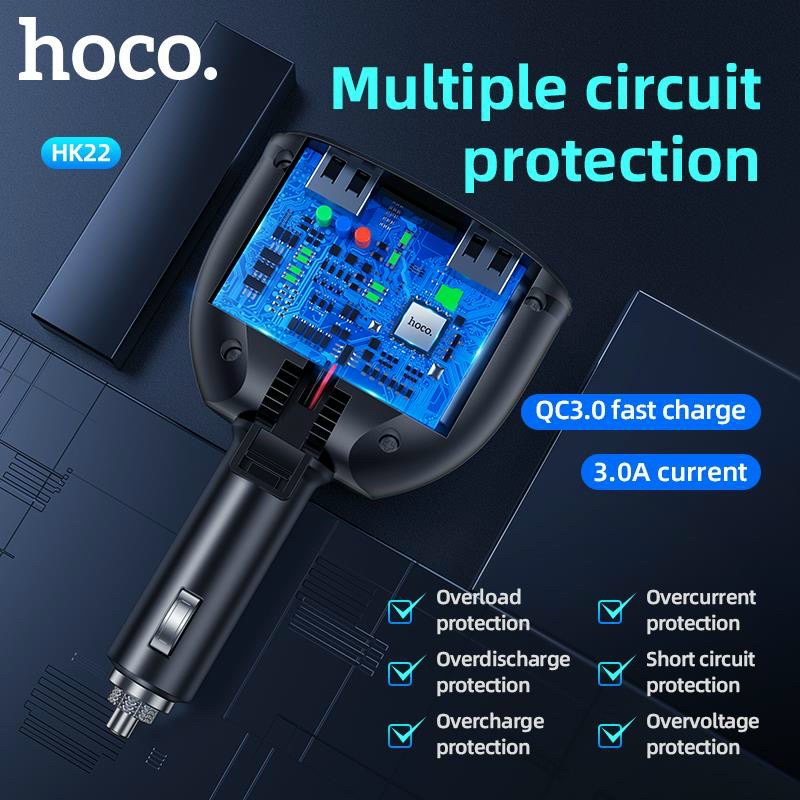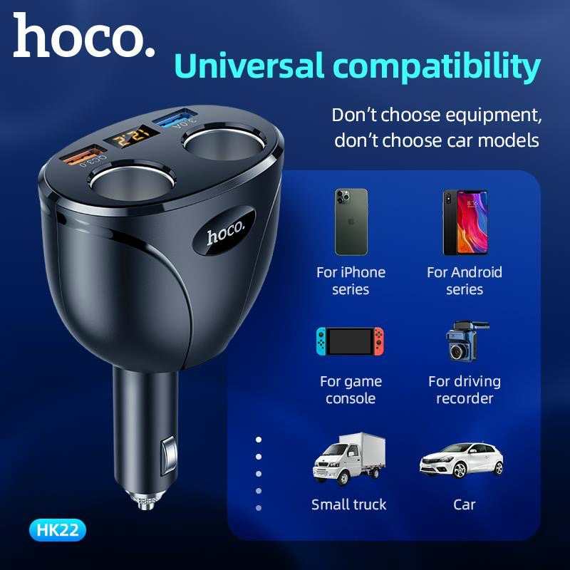 Sạc nhanh ô tô Hoco HK22 phiên bản tẩu sạc ô tô hỗ trợ sạc nhanh QC3.0 đi kèm 2 cổng sạc mở rộng hỗ trợ sạc cho nhiều thiết bị cùng lúc với đầy đủ các trang bị an toàn, chắc chắn sẽ là lựa chọn đầu tư hợp lý nhất cho mọi người dùng sở hữu xế hộp.