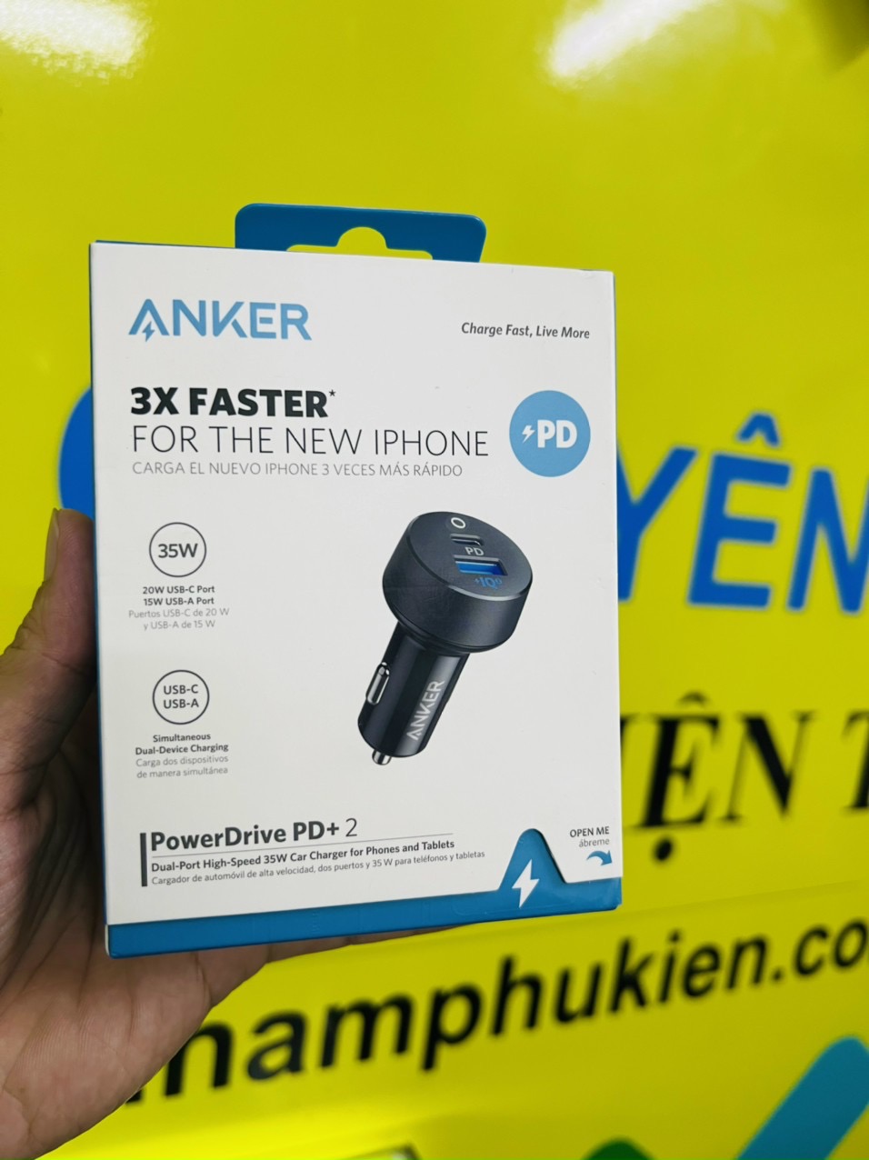Sạc Ô TÔ 35W Anker 2 Cổng 35W, PowerDrive PD+2 (20W PD +15W)-A2732 - 2 cổng công nghệ mới dành riêng cho điện thoại và máy tính bảng với tốc độ mạnh mẽ.