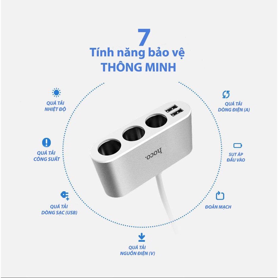 Sạc xe hơi đa cổng Hoco Z13 còn được Hoco sản xuất với chất liệu ABS và PC mang đến độ bền vượt thời gian, chống rò gỉ và ăn mòn và hơn nữa là tính thẩm mỹ vô cùng cao cho sản phẩm. Về hiệu năng thì sạc ô tô Hoco Z13 còn được trang bị 3 ổ cắm 100W cùng 2 cổng USB(5V/2.1A) mang đến hiệu quả sạc kép bạn có thể sạc cùng lúc 2 điện thoại, một điện thoại, 1 Ipad mà điện năng nạp vào các thiết bị cũng không hề giảm đi.