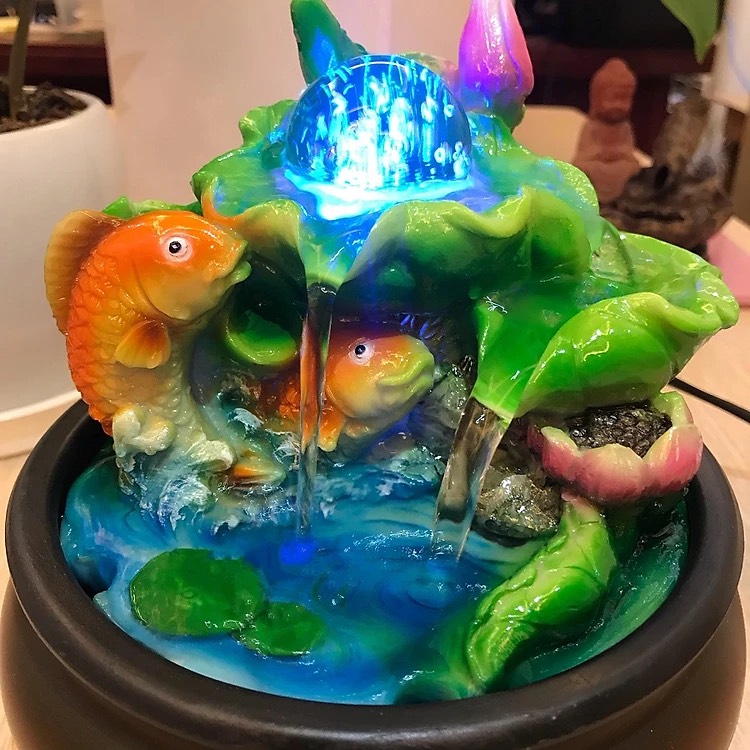 Thác nước phong thủy Cá chép, cá chép là biểu tượng vô cùng may mắn, có thể mang đến tài lộc, công danh cho gia chủ, cùng với việc kết hợp với thác nước phong thủy luân chuyển, không bao giờ ngừng nghỉ, cũng đồng nghĩa với sự giàu có luôn luôn hiện hữu, dồi dào.