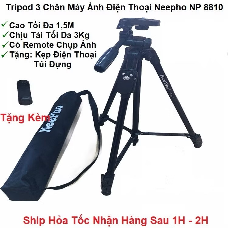 Chân máy ảnh NeePho NP-8810 là sản phẩm chuyên dụng dành cho các loại máy ảnh và máy quay phim gia đình. Với thiết kế gọn nhẹ, dễ dàng di chuyển và sử dụng, bạn có thể dễ dàng chụp ảnh mà không lo rung tay gây mờ nhòe. Chân máy ảnh NeePho NP-8810 còn giúp bạn linh hoạt sáng tạo những khung hình đẹp nhất.