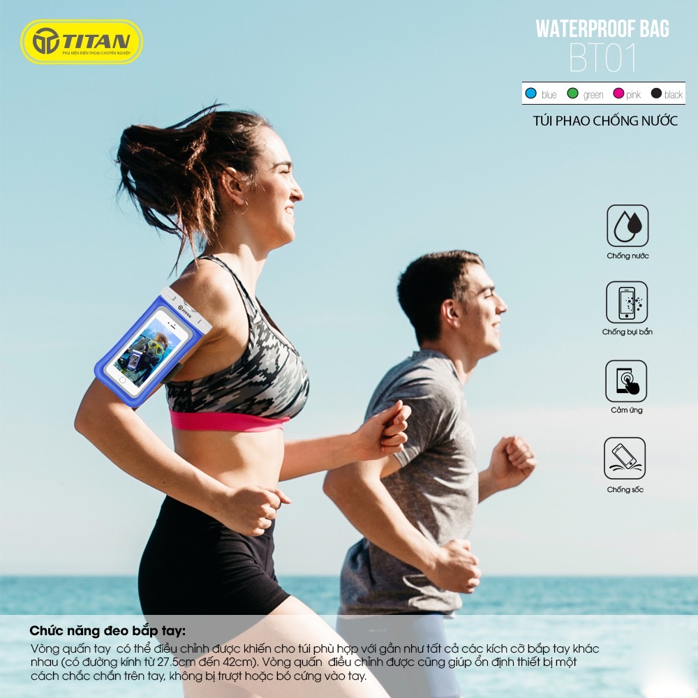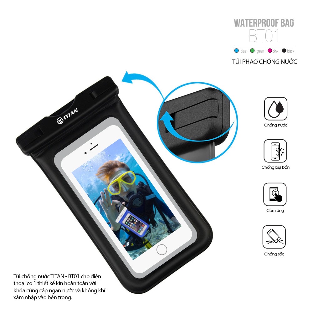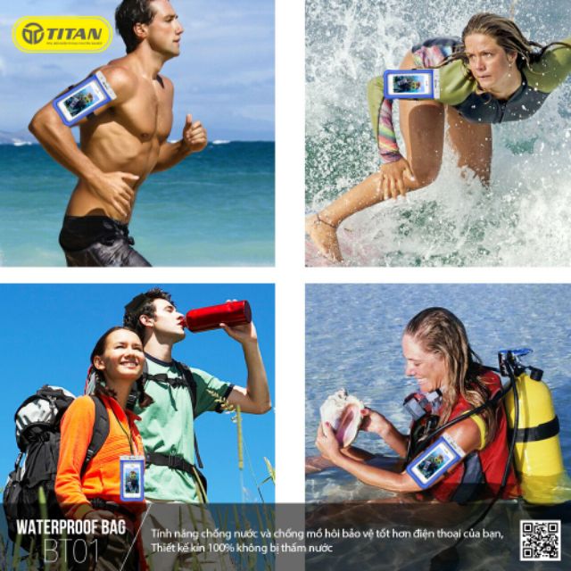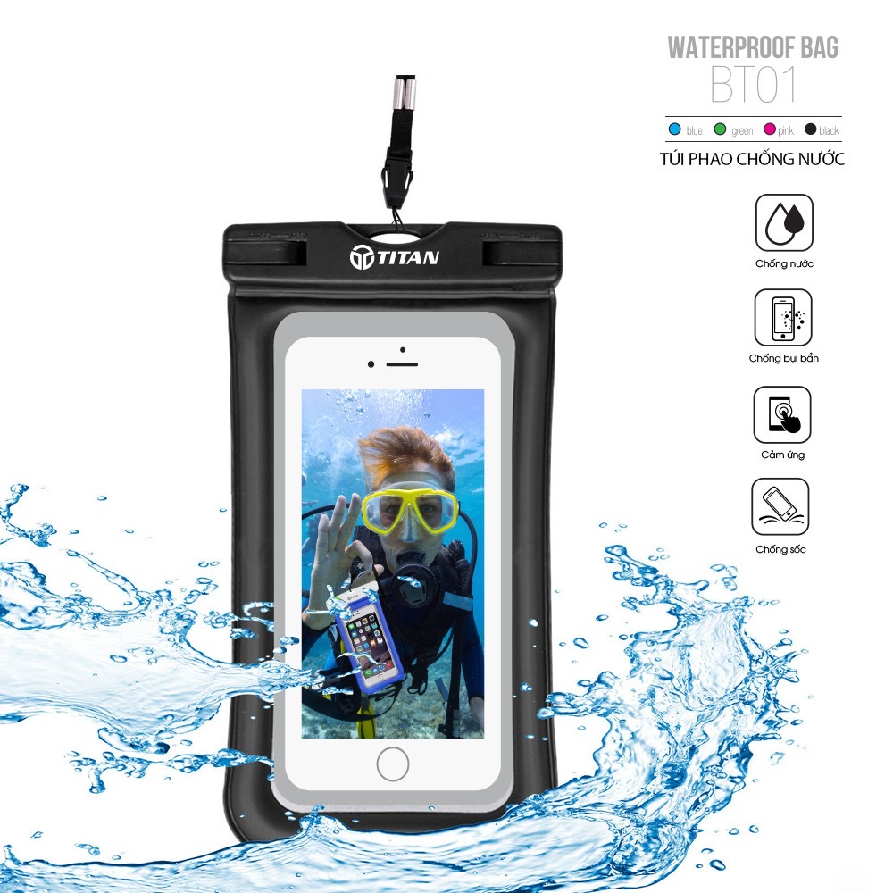 - Bạn muốn bảo vệ chiếc điện thoại an toàn khi đi du lịch đặc biệt là những bức ảnh thật đẹp ở dưới nước mà không cần phải lo nghĩ cách bảo vệ chiếc smartphone khỏi bị vào nước Titan đã giúp bạn làm điều đó bằng sản phẩm Túi hơi chống nước đa năng Túi hơi chống nước, chống chìm đa năng Titan BT01 cho iPhone, Samsung.