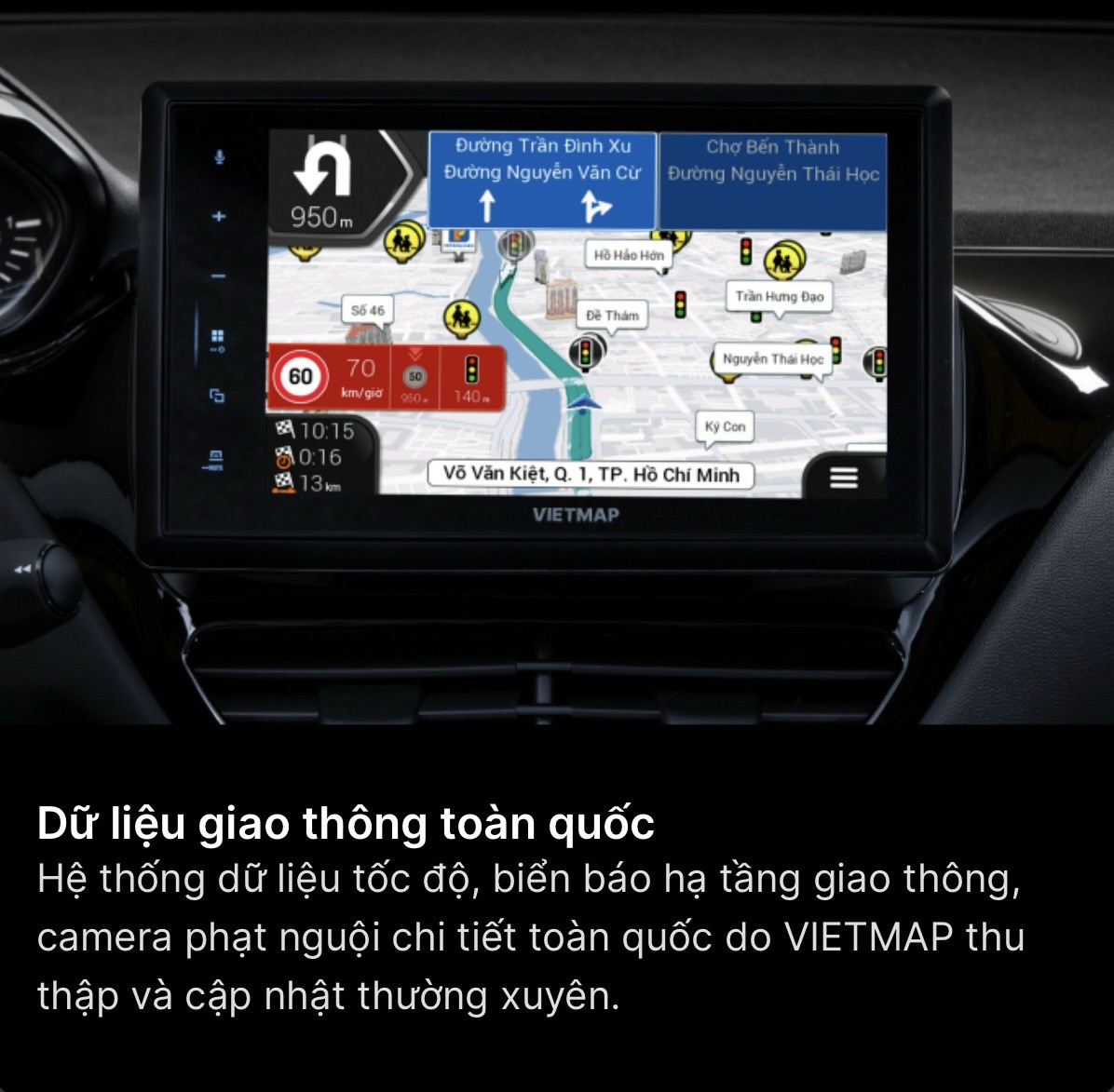 Hệ thống dữ liệu tốc độ giới hạn, biển báo hạ tầng giao thông, camera phạt nguội chi tiết toàn quốc do VIETMAP thu thập liên tục và cập nhật thường xuyên.