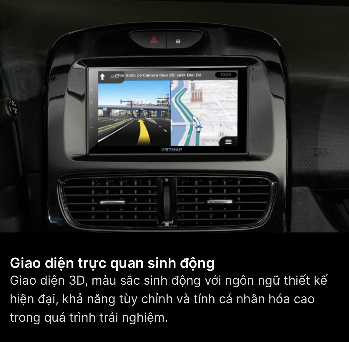 Kết hợp với VIETMAP Assistant hỗ trợ tìm địa chỉ ra lệnh bằng giọng nói nhanh chóng.