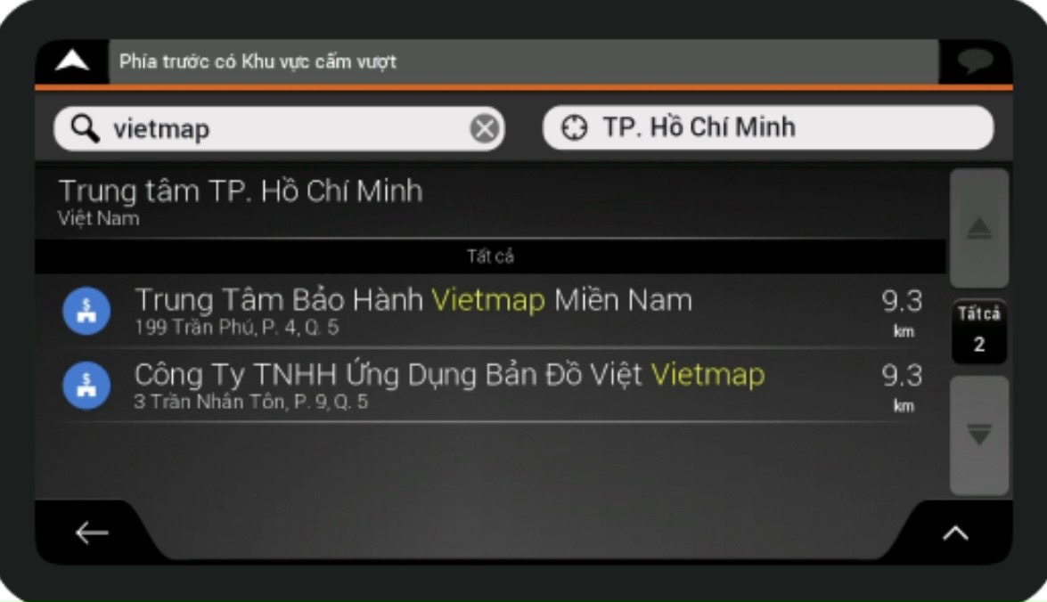 Chỉ với một thao tác đơn giản, mọi kết quả tìm kiếm cần thiết cho lộ trình sẽ được VIETMAP S2 hiển thị và tuỳ chỉnh theo từng yêu cầu & mục đích sử dụng.
