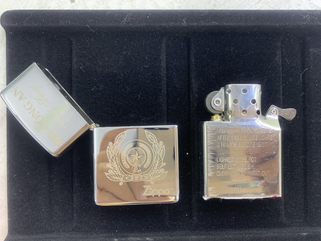 Mang 1 chiếc bật lửa do bộ công an kính tặng thể hiện 1 đẳng cấp hơn so với những chiếc bật lửa khác,số lượng có hạn. Bật Lửa Bộ Công An Kính Tặng. Khi khắc trang trí chữ cách điệu, họa tiết, sắc xảo sẽ cho bạn một bật lửa đẹp và độc đáo nhất. Quẹt như hình,ruột và vỏ trùng năm.